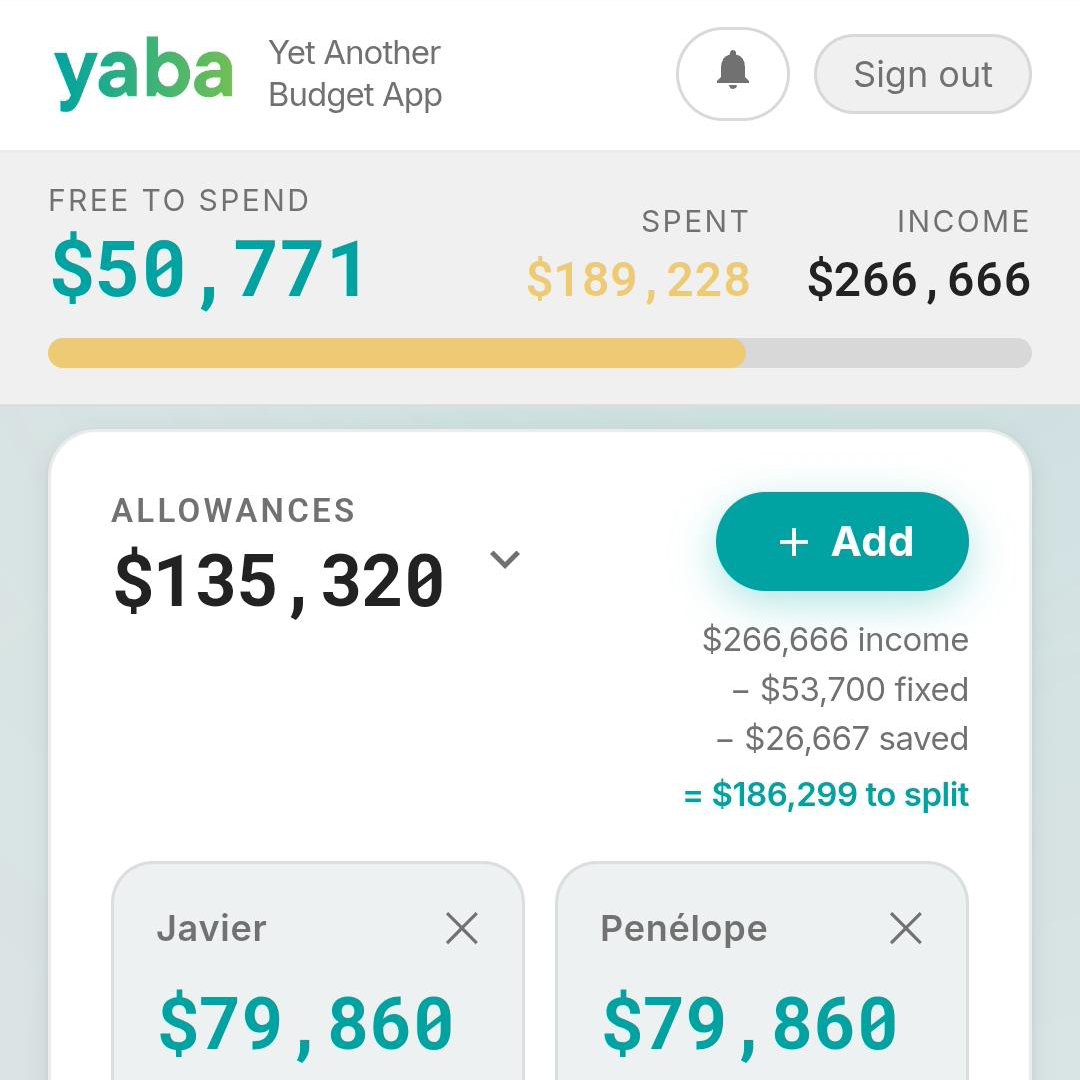 Set per-person spending allowances based on your actual income. Yaba suggests a fair split automatically.