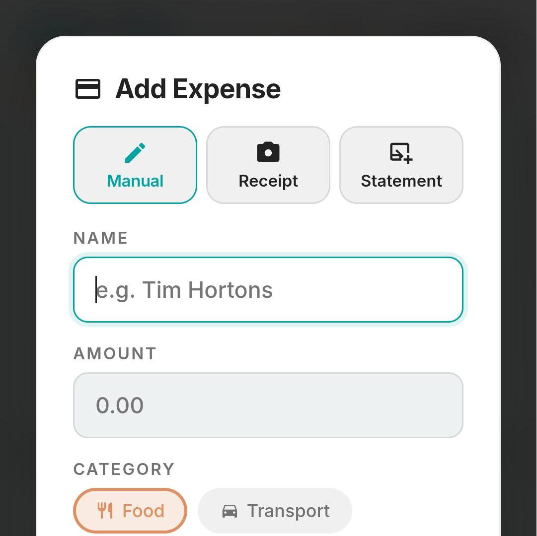 Photograph your bank statement or a receipt and Yaba reads the transactions automatically. No manual entry.